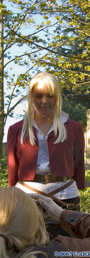 Around November of 2006, my friends and I began discussing how AWESOME it would be to do a big Fullmetal Alchemist group, in their movie costumes. I had already planned to cosplay Ed's movie outfit, but for the purposes of this group I picked up Winry, because Kayla (BATCosplay) wanted to be Ed, and was the shortest of the group, which made her the most appropriate for the part. In the end, I really liked cosplaying as Winry though, and this is what pushed me to do more of her costumes